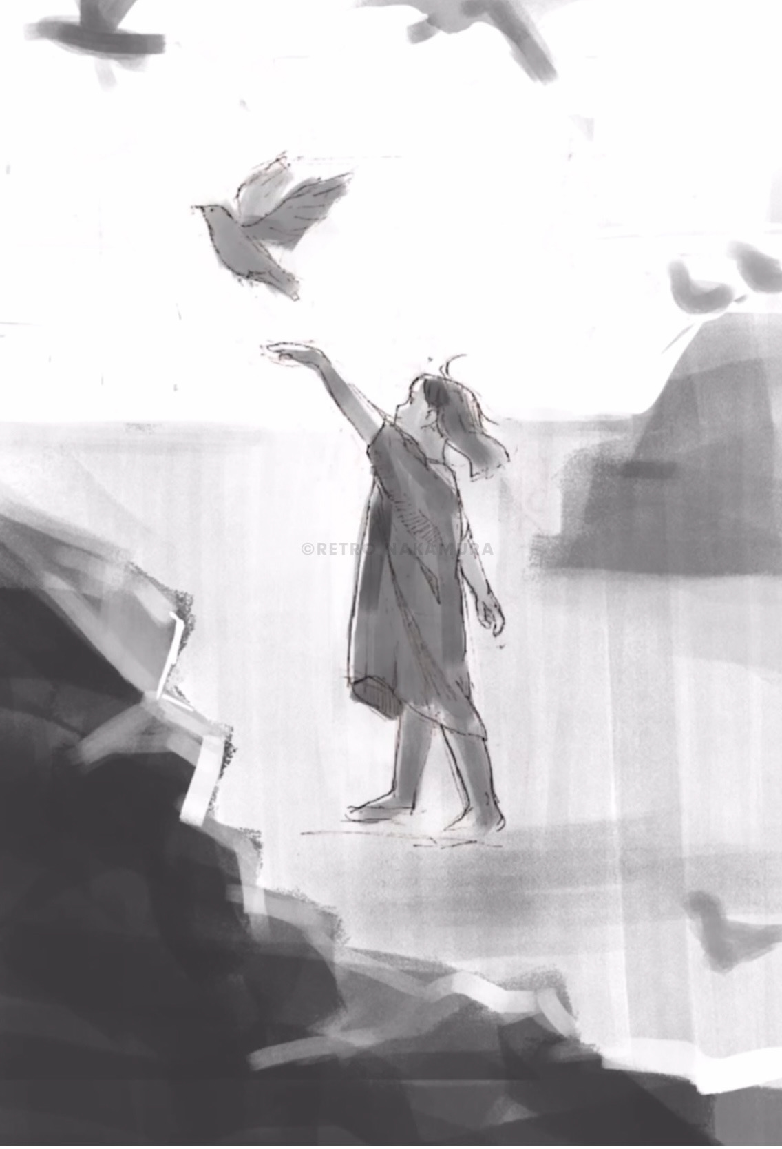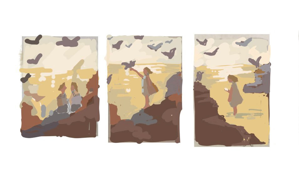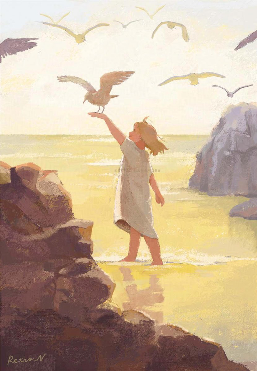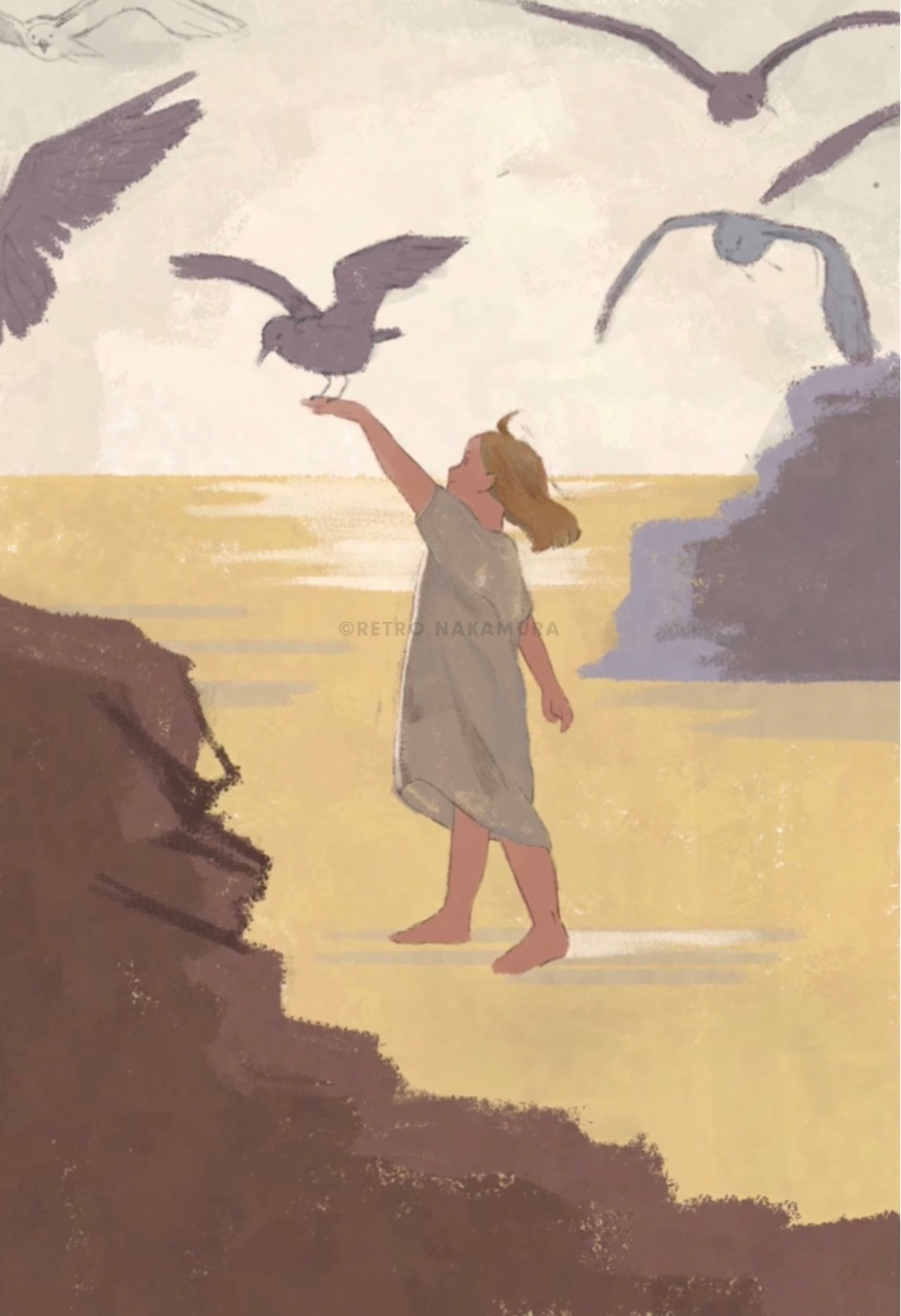 少女が二人でお話しているようなラフもありましたが、今回は情緒的なイメージにしたかったので、一人の少女を配置し、うっとりするような一瞬をイメージして描きました。